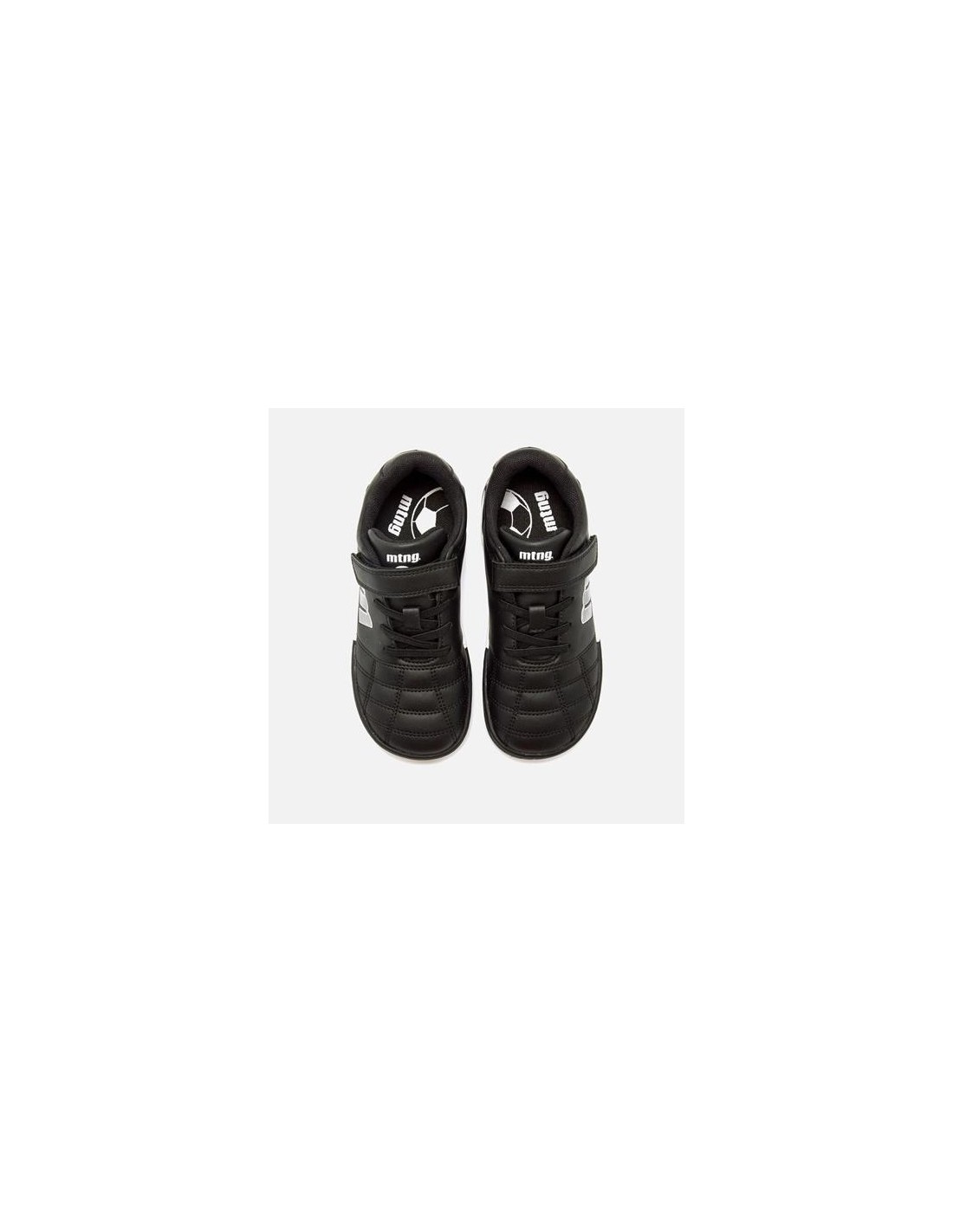 Zapatilla de fútbol barefoot de color negro con detalles blancos para niño de la marca Mustang, modelo Free Play. Diseñada para ofrecer mayor durabilidad en el uso diario, incorpora puntera reforzada que protege el corte de la abrasión por contacto con el suelo. Cierre adhesivo de cosido reforzado que garantiza un ajuste seguro y práctico. La suela de goma incluye pequeños tacos que mejoran la tracción y el agarre. Diseñado y desarrollado especialmente en colaboración con el Dr. Juanjo López, traumatólogo deportivo e infantil, para respetar el desarrollo natural del pie del niño y la niña. Gracias a su puntera ancha permite el libre movimiento de los dedos dentro del zapato. Las plantillas extraíbles facilitan comprobar si la talla del calzado es la correcta para tu hijo. Además, su fácil apertura facilita que el niño pueda descalzarse y calzarse de forma autónoma.